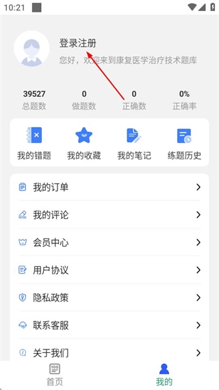 1、在康复医学治疗技术的首页,点击底部的“我的”选项,进入个人中心页面。