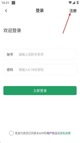 3、在登录页面,点击右上角的注册选项,进入注册页面。