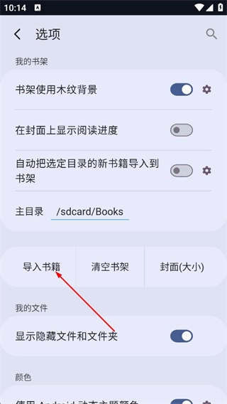 3、进入选项页面后,点击“导入书籍”按钮,即可打开导入书籍的设置弹窗。