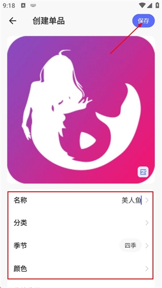 4、完成单品名称、分类、季节等信息的设置后,点击右上角的保存按钮,即可完成创建操作。