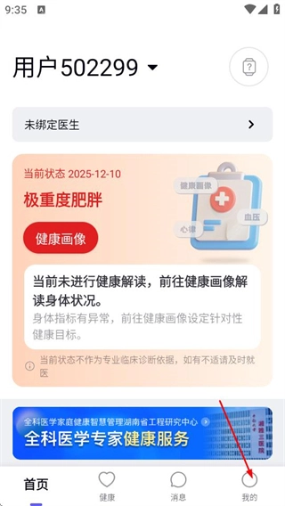 在心泰健康的首页,点击底部的“我的”选项,即可进入个人中心页面。