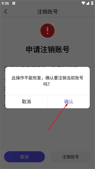 6、在二次确认弹窗里,点击确认按钮,即可完成账号注销操作。