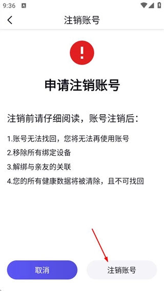 5、进入注销页面后,先仔细阅读相关提示内容,随后点击注销账号按钮,此时会弹出二次确认的窗口。