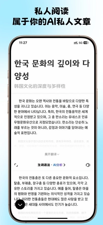 AI智能造句:输入关键词,就能快速生成地道的韩语句子,在实战应用中提升表达能力。