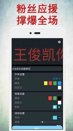 led灯牌显示屏弹幕,是一款相当好用的掌上LED灯应用。借助它,你能把手机屏幕改造成LED灯板,滚动显示你想表达的内容,还有超多华丽的字幕可供选择,用起来十分有趣,感兴趣的朋友不妨试试!