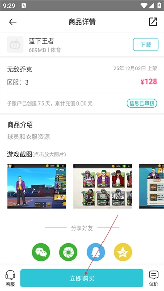 3、商品详情页中,确认商品信息后点击【立即购买】,跳转至支付页面。