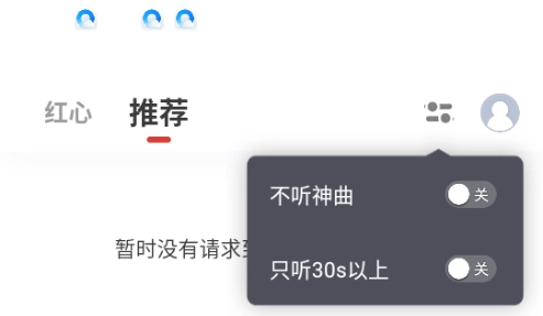 3. 在「设置」里开启“仅收听30秒以上”与“过滤神曲”的功能后,App就会自动跳过广告和洗脑神曲,从而提升播放效率。