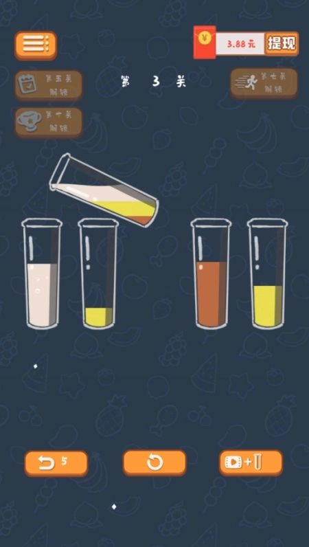 简单的操作玩法模式,你可以控制水瓶来倒入不同的液体,让液体变换不同的颜色。