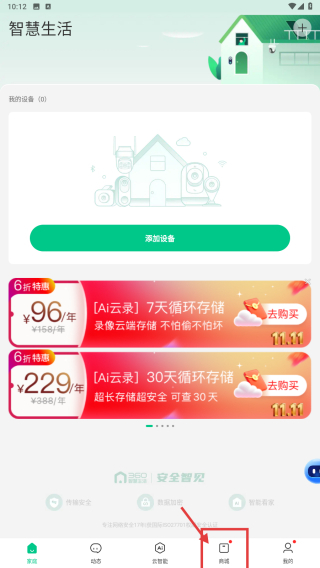 1. 开启智能家居应用,轻点底部的商城选项,从而进入360商城页面。