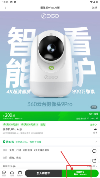 3、于商品列表页面,点击摄像机9Pro - AI版的商品条目,随即进入商品详情页。