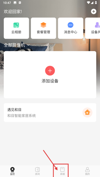 1. 进入智能家居类产品的首页,点击页面底部的商城选项,从而进入商城界面。