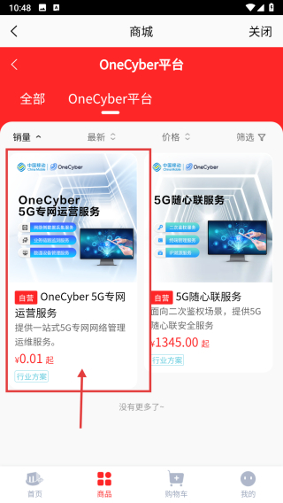 4、于平台服务列表页面,点击OneCyber-5G专网运营服务,就能查看此5G专网运营服务的详细信息,并进行购买操作。