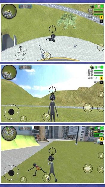 多样的逃生关卡和任务,自由探索城市的每一个角落,寻找隐藏的道路和秘密通道,解锁更多的火柴人的技能。