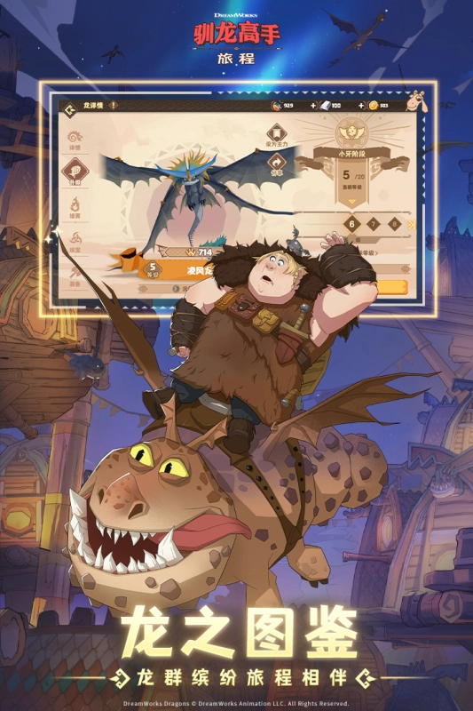 驯龙高手:旅程免费版是由环球影业及其子公司梦工厂动画授权,明日世界自主研发并发行的模拟经营与驯龙类游戏。在游戏里,玩家能够招募、驯服、繁育并培育各式各样独具特色的飞龙伙伴,组建一支强悍的驯龙军团,和龙族一同在“天空竞赛”中称雄,守护“博克岛”,并致力于让博克岛愈发繁荣兴旺。游戏的故事背景设定在维京时代,这一次,玩家将在博克岛的龙训练基地中化身龙骑士,再次与小嗝嗝、没牙仔以及众多熟悉的朋友们重逢,携手开启一段全新的冒险旅程!
