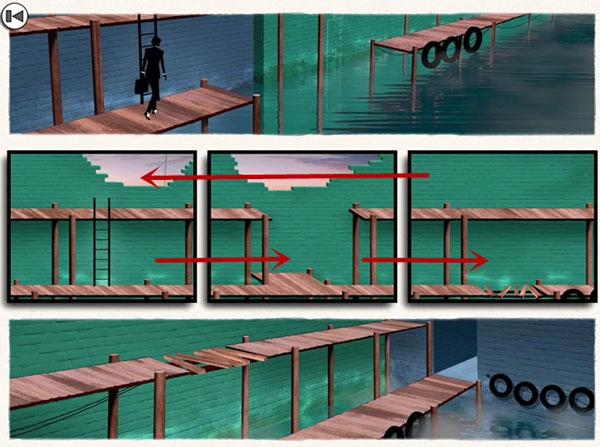 第四关:要对所有画面位置进行调整,依次达成“桥”与“锁”这两个目标。