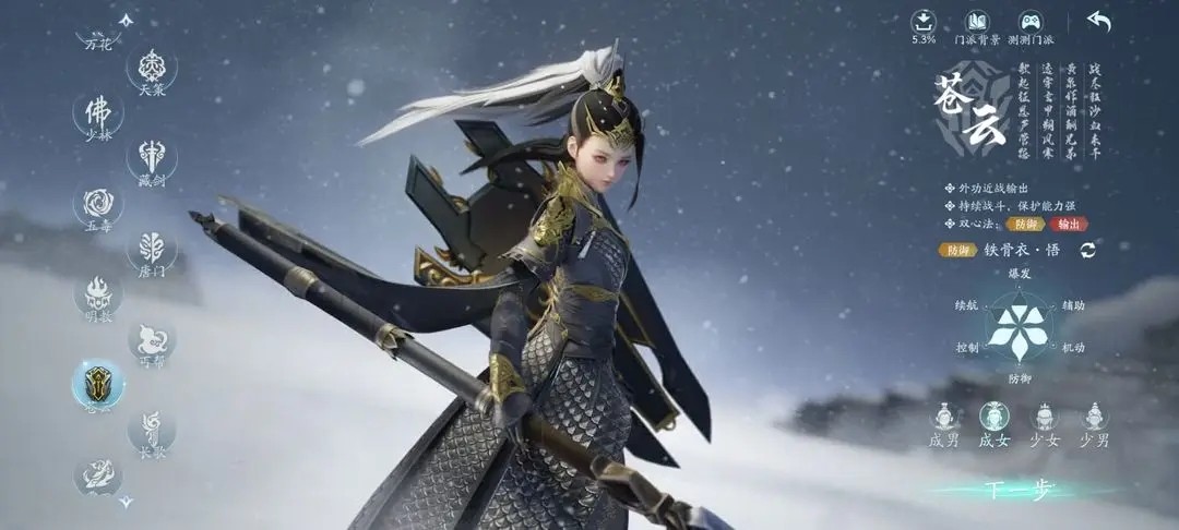 一个擅长马术、能在战场上来回腾挪的刺客。他会先在地面发动突进控制,衔接一套技能输出;战斗中再趁机上马,借助坐骑拉开距离后再次突进控制,打出另一套技能组合。他的另一套心法是坦克定位,武器配备的是长枪。