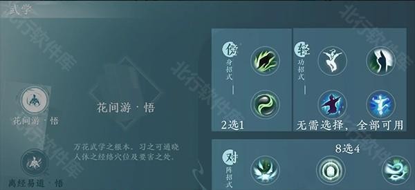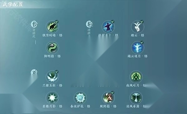 我们对各门派的技能做了分类整合,把傍身招式、绝技招式、对阵招式和轻功招式归为四大类别,大家能在傍身招式里效果各异的两个招式中自主挑选。