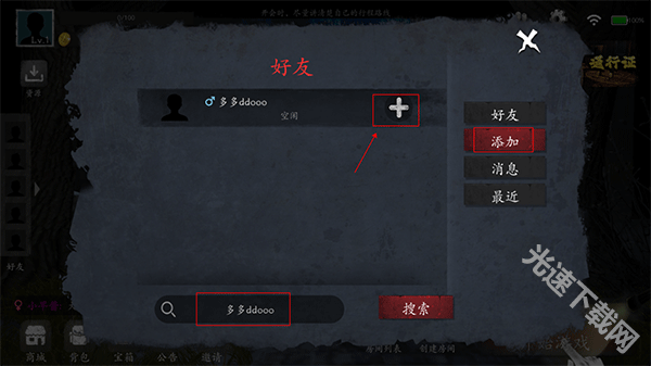 打开后点击“添加”功能,接着在下方的搜索框里输入好友的名字进行搜索,搜索结果出来后点击“+”号完成添加操作。