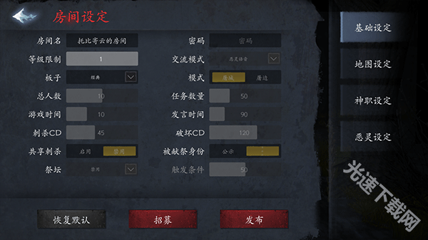 然后设置房间的等级、密码、人数、任务数量等信息,再点击招募或发布按钮。