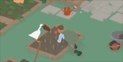 首先,在鹅作剧里,玩家能在园丁的花园中看到一朵花,把这朵花从土里拔出来之后,再将它放置在地上。