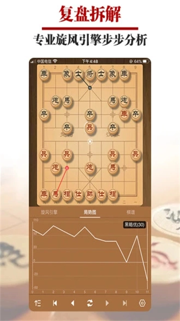 复盘拆解:借助专业象棋旋风引擎,对每一局对弈展开详尽的复盘剖析,助力玩家归纳实战经验。