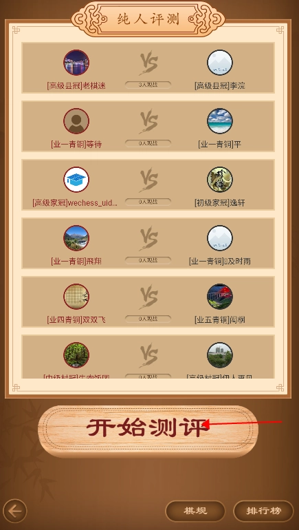 棋力评测:运用中国象棋等级分体系,开展真人在线棋力测评,助力玩家精准把握自身的棋力水准。