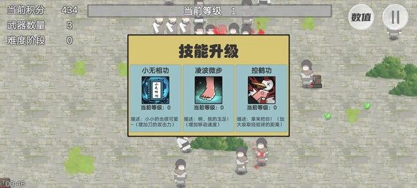击败敌人会掉落经验,收集后能提升角色等级,每升一级都可以选择一个技能。