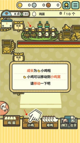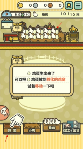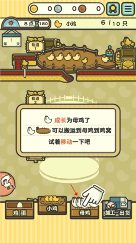 当小鸡长大变成母鸡后,就能延续母鸡生蛋的循环了,这时候把母鸡转移到“母鸡”区域就行。