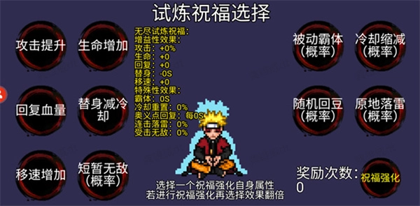 闯关之前可以选择一个试炼祝福。