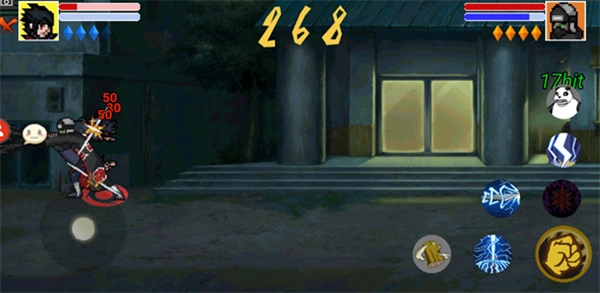 左边的虚拟按键用于操控角色移动,右侧设有各类忍术,点击即可释放,只是会存在冷却时间。