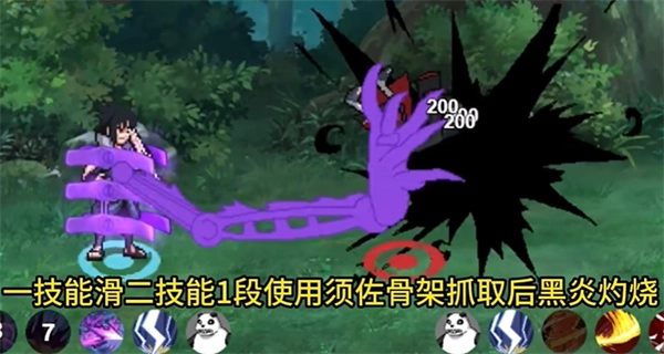 组合技1:先用1技能滑接2技能1段,借助骨架进行抓取,接着运用黑炎实施灼烧。