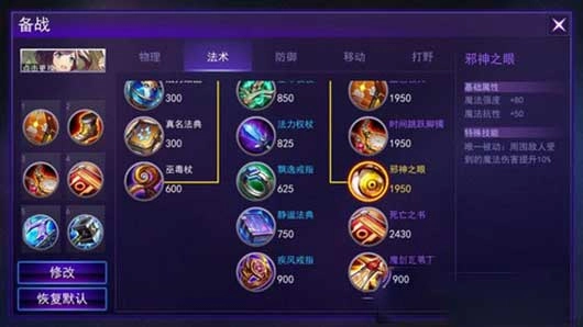 上杉谦信的出装思路如下:首先出血色教典,接着是法穿鞋;第三件装备需根据敌方伤害类型调整——若对面物理输出占优,就选择时间跳跃脚镯;若法术伤害较多,则换成邪王之眼;后续再补出死亡之书、破法曲剑和雷电法杖。