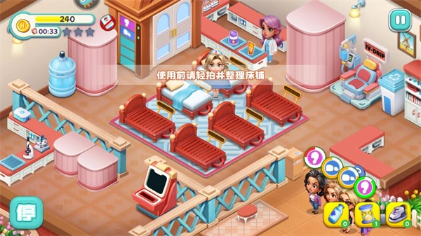 玩家需要持续升级各类设备,增强诊疗能力,给顾客提供更优质的服务,以此提升疗愈院的口碑,吸引更多顾客前来就诊。