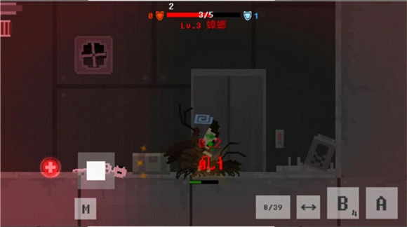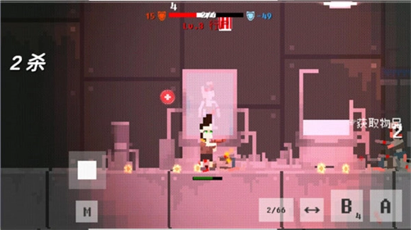 进入游戏界面后,能看到以下按键:B键对应翻滚动作,A键用于发起攻击,P键可获取更好的武器,M键则是用来调出功能界面的。