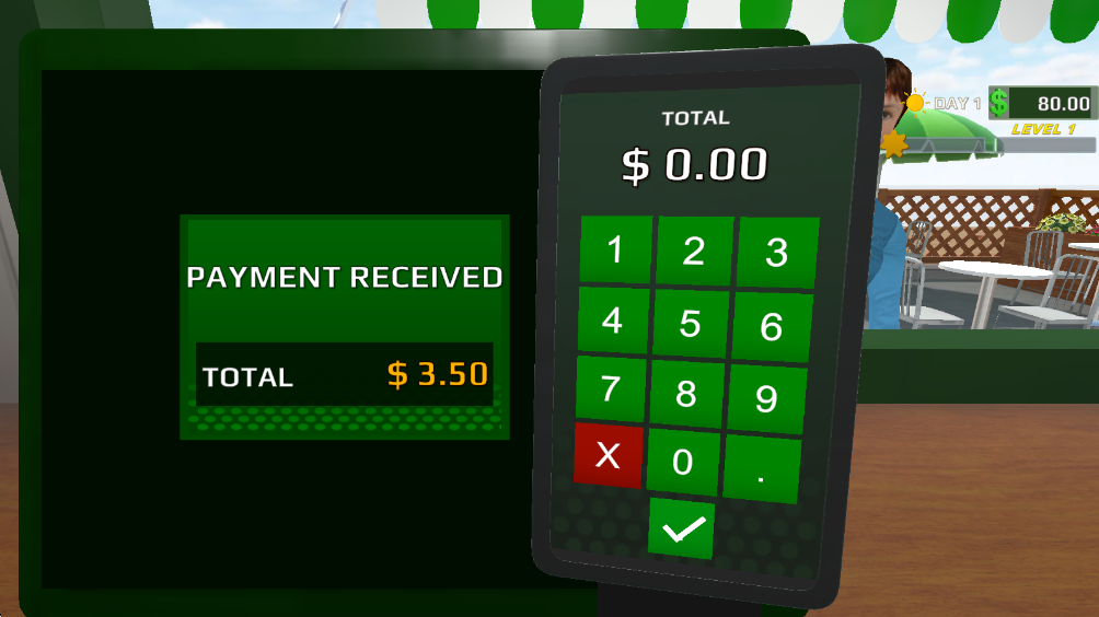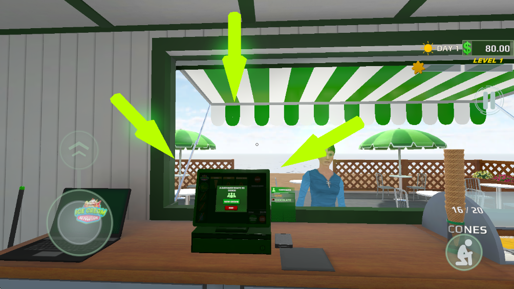 接下来,你得调整游戏视角,移动到收银台那儿,准备给过来消费的顾客点单。