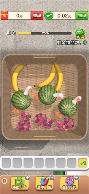 开心抓大鹅玩起来挺轻松的。游戏里,你只要把三个一样的鹅凑在一起就能消除它们,每消除一次,你就能拿到一个红包。这个红包是可以提出来的,而且你玩得越多,提的比例就越高,前期升级也挺快的,很容易就能提升实力。
