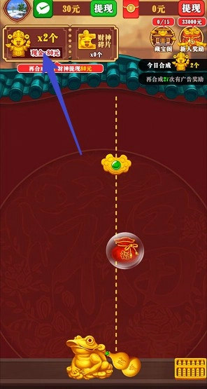 是真的,玩家通过合成物品就能拿到红包,开局的新人奖励完成起来很简单,慢慢玩就行;之后再合成一个财神,还能额外兑换一个红包。游戏里的红包按万分比例来兑换,合成的财神越多,兑换比例就越高。