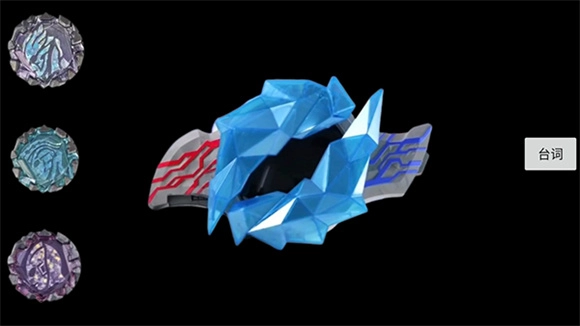 打开模拟器后,能看到它和特摄剧中的变身器外观一致:左侧是布莱泽晶石,下拉菜单里总共有十一枚;中间位置则是布莱泽手镯。