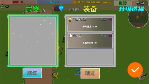 冰火人升级后能够挑选升级效果,开启宝箱可获取武器与装备,每个角色最多可搭配三件武器和三件装备。