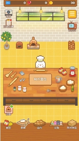 2、得到小麦粉后,可点击厨房制作面包。每个面包都有独特的食谱,需准备对应的材料才能开展制作。