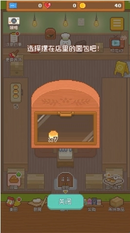 4、面包制作完成后,点击店内选项,接着点击面包店内的空盘子,就能将你的面包上架了。