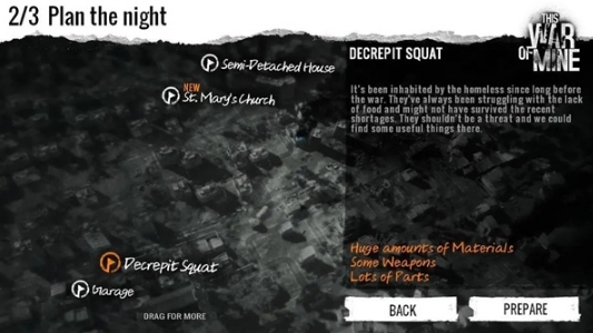 第一个夜晚安排马可外出搜集物资,厨子休息,帕夫列负责守夜。记得带上撬棒前往第一个安全点的废墟收集物资,物资肯定装不完,把所有资源集中堆放在同一个存放点,这样下次来取的时候会更方便。