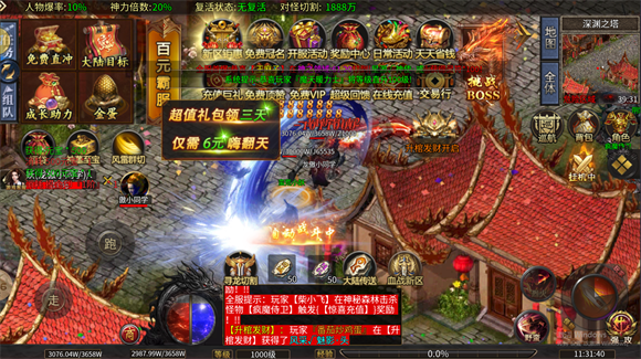 2、丰富的奖励体系:涵盖幸运红包抢夺、等级达成奖励以及击杀怪物奖励等多元激励形式,确保玩家在游戏进程的各个阶段都能收获满足感与成就感。