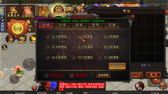 2、自动化游戏辅助功能:游戏自动捡物与自动回收机制,大幅降低了玩家的操作负担。