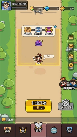 1、进入游戏后点击快速开始可以开始闯关。