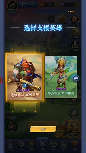 2、游戏里提供了多样的英雄角色供玩家挑选与培养。每个英雄都具备独特的技能设定和专属背景故事,玩家能够通过自主组合不同英雄,充分激发他们的战斗潜能。