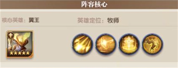 2、T0梯队阵容推荐:控制免疫流派,阵容核心英雄为翼王。该阵容的主要特点是多数英雄拥有50%以上的控制免疫属性,设计初衷是专门针对敌方的全控制或半控制类型阵容,能有效降低控制技能对我方的影响。