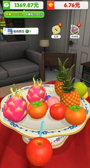 把合成好的水果放置到指定果盘里,完成果盘任务就能得到丰厚的金币与红包奖励。