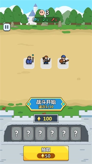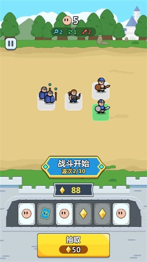 4、点击“战斗开始”按钮即可开启闯关,小兵会自动发起攻击,待所有敌人被消灭后,就能挑战下一波敌人。