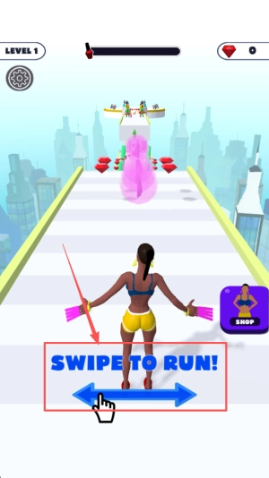 1、进入游戏:先打开游戏主界面,点击LEVEL1,按照提示SWIPE TO RUN进入第一关。